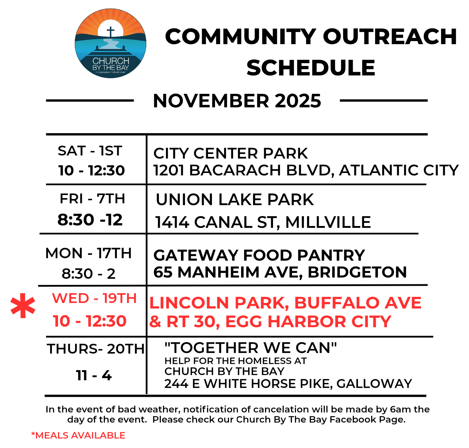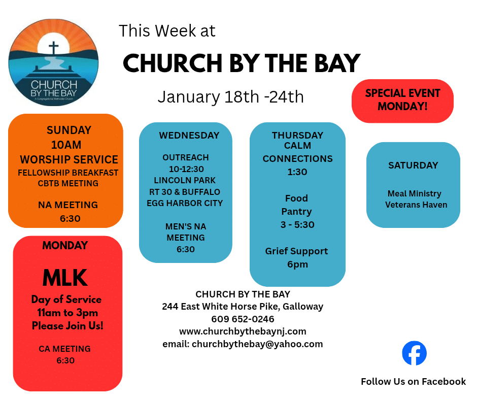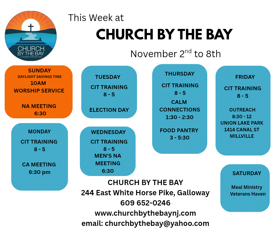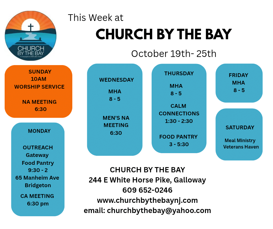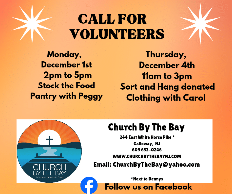 For more information, please call Church by the Bay (CBTB) at 609-652-0246.